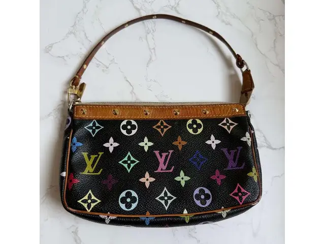 De Louis Vuitton monogram multicolor pochette accessoires is een iconisch vintage model uit de originele samenwerking tussen Louis Vuitton en de Japanse kunstenaar Takashi Murakami. Deze bijzondere collectie groeide uit tot een van de meest geliefde en verzamelwaardige lijnen binnen Louis Vuitton en staat bekend om haar speelse multicolor monogram op zwart canvas.