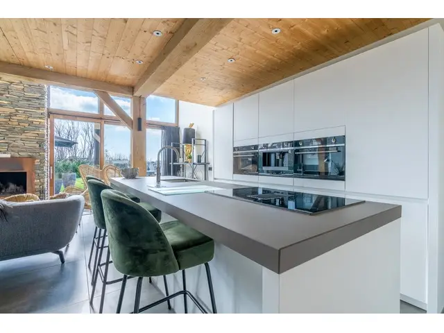Via de entree stap je binnen in een ruime en sfeervolle living met een comfortabele zithoek, open haard, smart-tv en een muzieksysteem. De open keuken sluit hier naadloos op aan en is van alle luxe voorzien, waaronder een koelkast, vriezer, vaatwasser, geïntegreerd koffiezetapparaat, Nespresso-apparaat, Quooker, stoomoven en een combi magnetron/oven.
