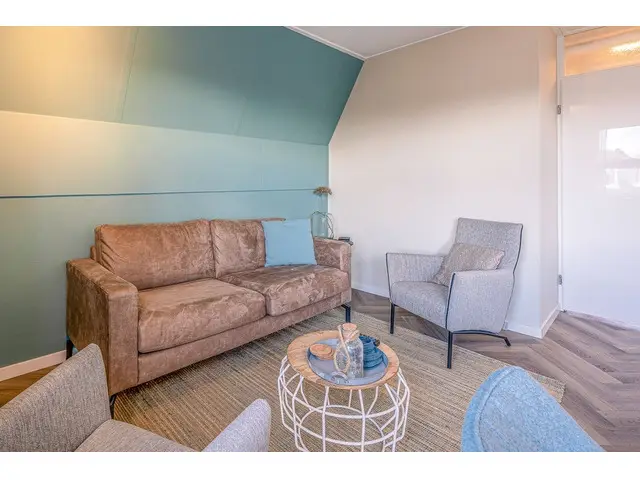 Via een schuifdeur in de woonkamer bereik je het balkon, dat op het westen is gelegen. Hier kun je genieten van de middag- en avondzon, met tuinmeubilair om het verblijf extra aangenaam te maken.