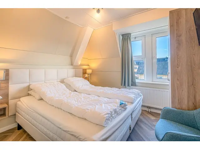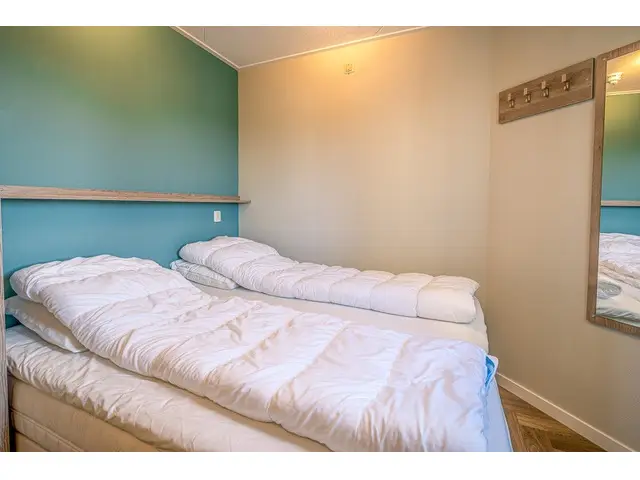 Het appartement beschikt over twee slaapkamers, elk ingericht met twee comfortabele eenpersoons boxspringbedden en een eigen televisie. De badkamer is voorzien van een moderne inloopdouche en een wastafel, en er is een separaat toilet aanwezig.